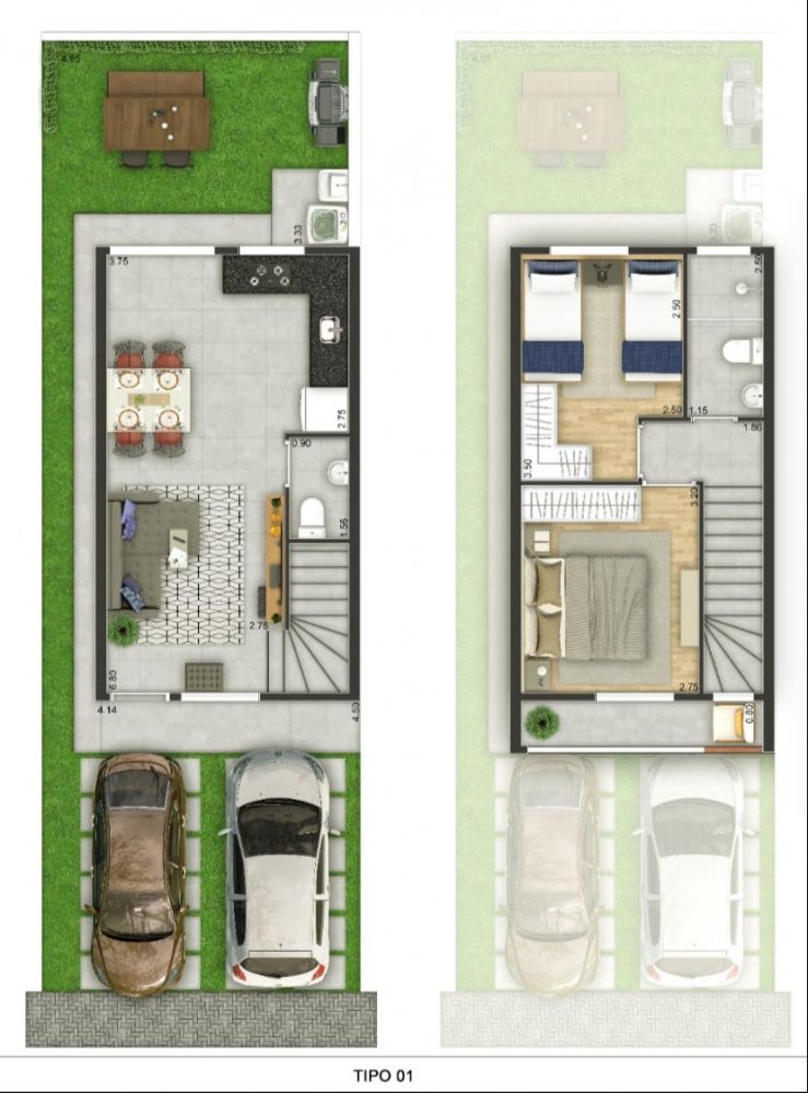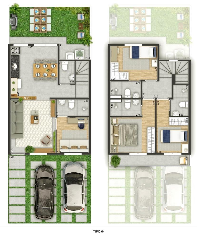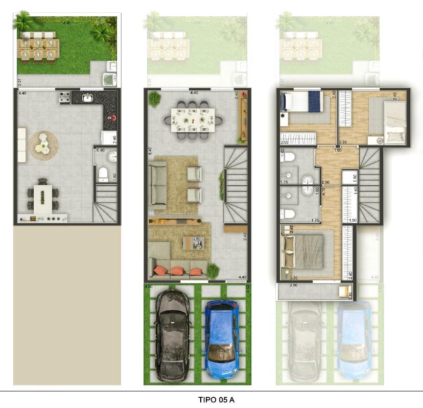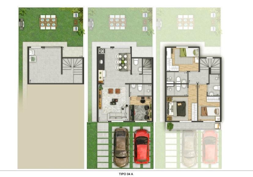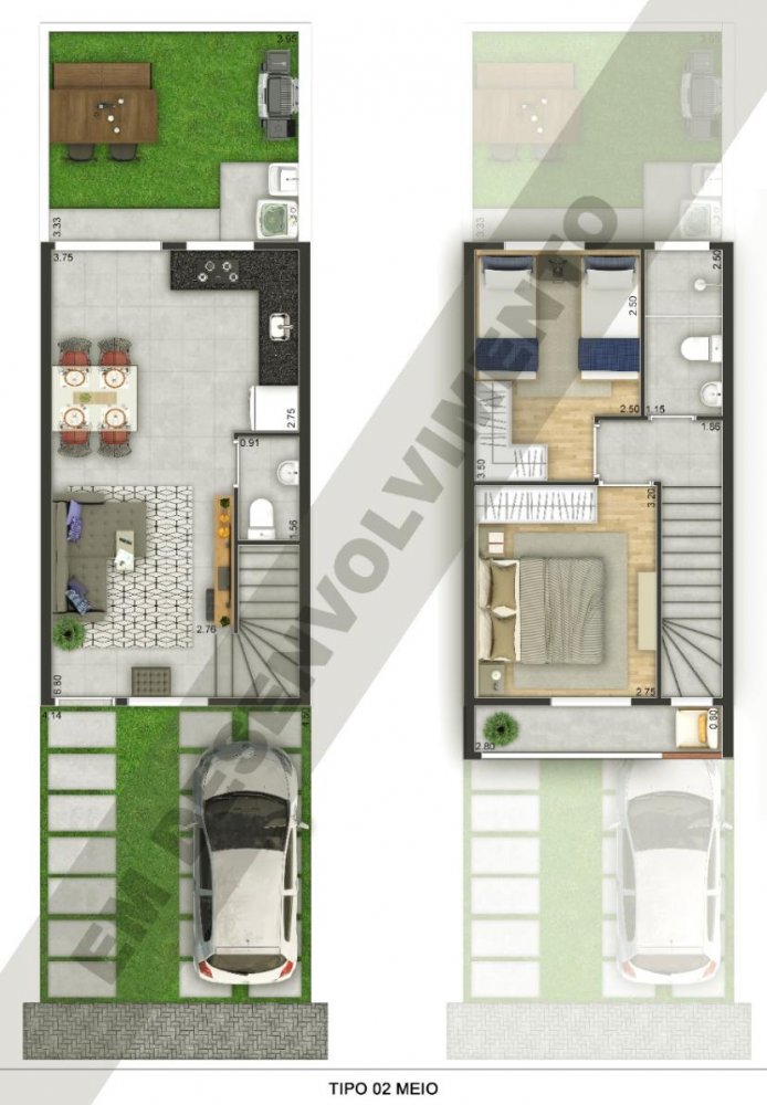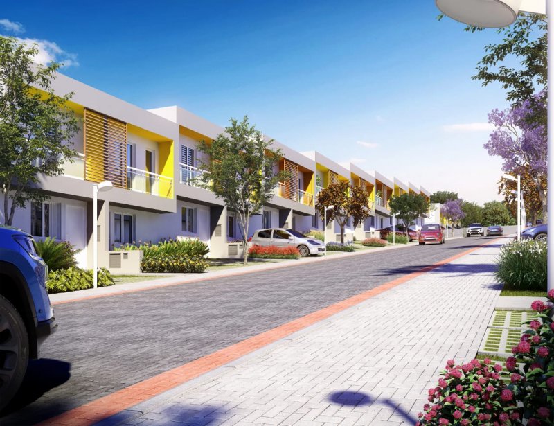 Condomínio fechado de sobrados, com unidades de 2, 3 e 4 dormitórios, Sendo com 1 ou 2 vagas de garagem. Com metragens a partir de 64 até 118 m². No total de 196 unidades.