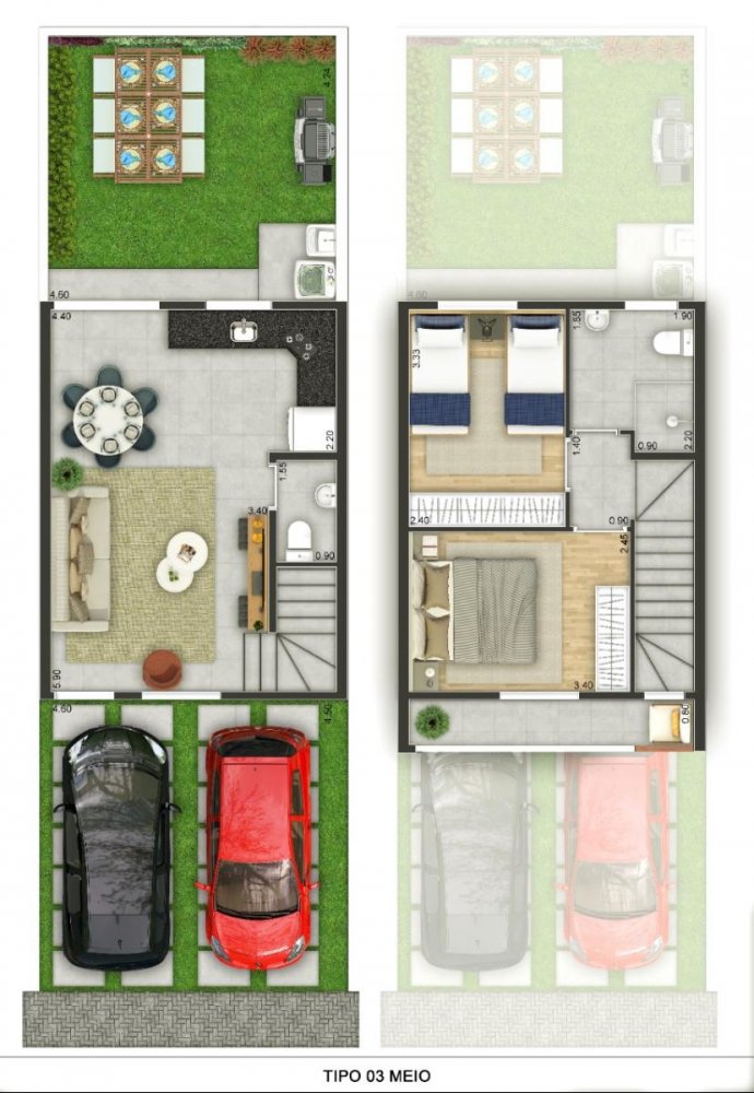 Casa com 2 dormitórios com 1 ou 2 vaga de garagem;