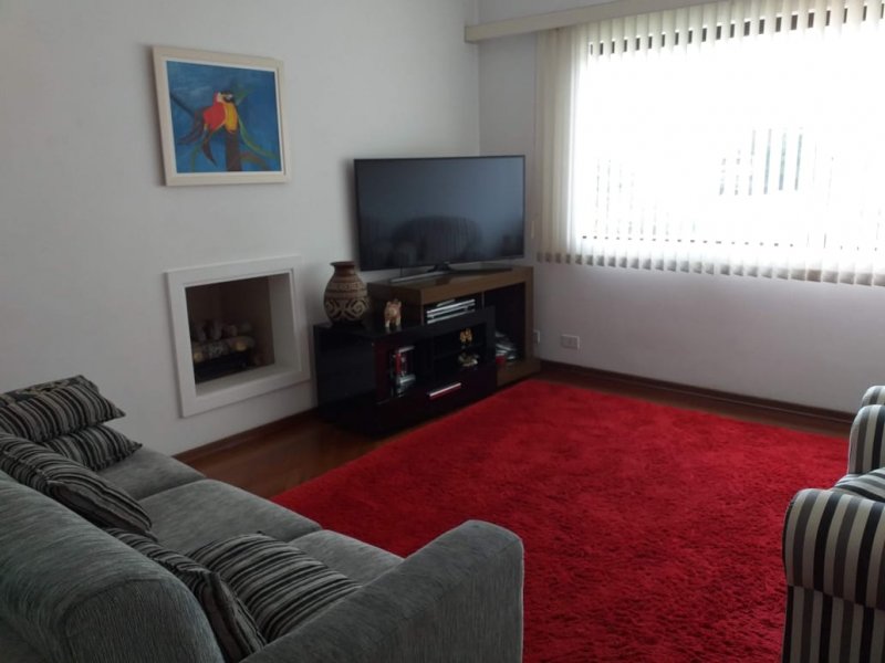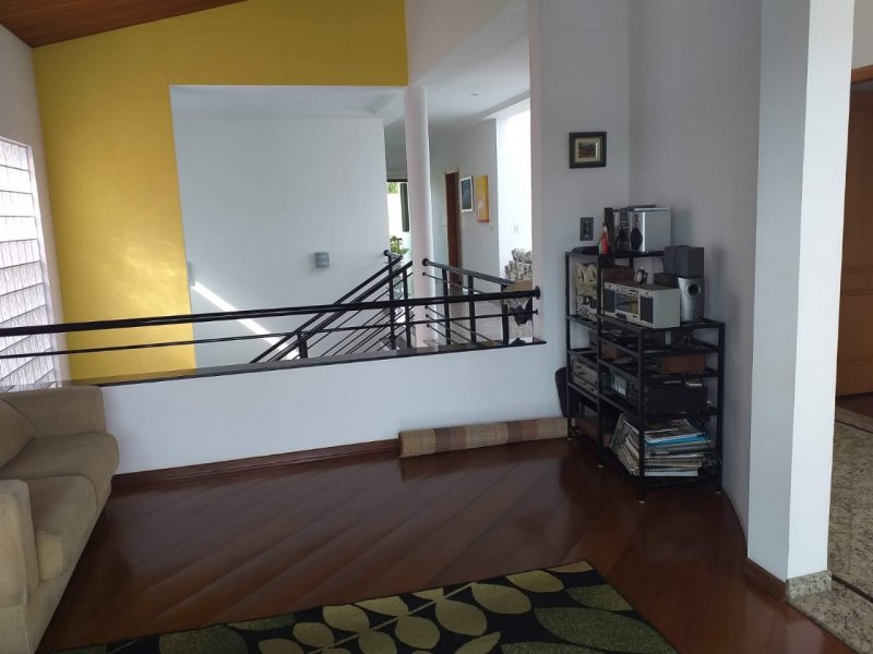 Sala 2 ambientes, em piso de madeira ipê, com lareira a lenha