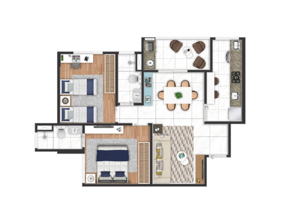 Apartamentos com 80,26m² sendo 3 dormitórios com 1 suíte e 2 vagas de garagem coberta.