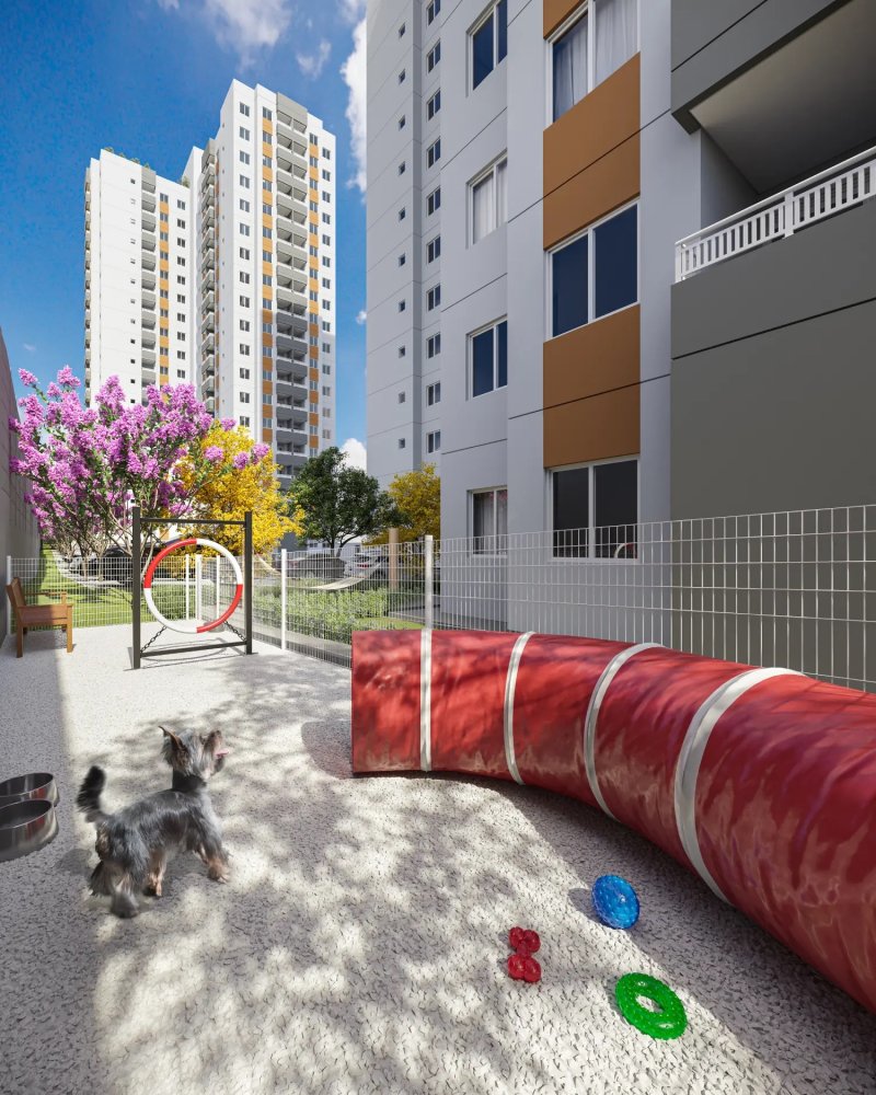 Condomínio totalmente acessível, piso tátil, vagas para idosos e vagas PCD;