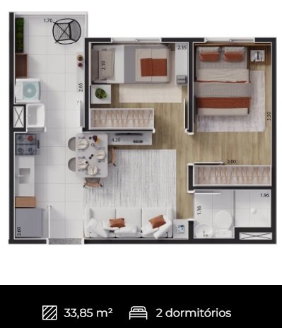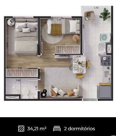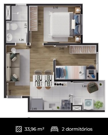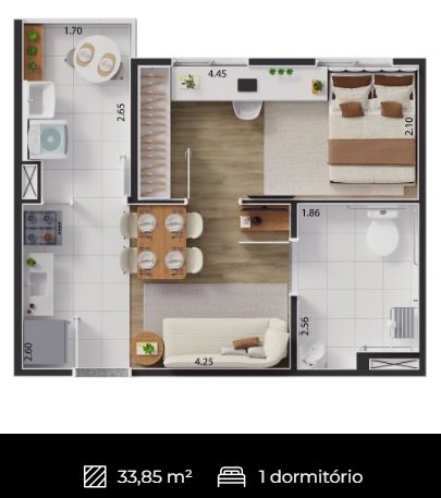 Área Total: 33,85 m² (R$ 6.496/m²)Área Privativa: 33,85 m²