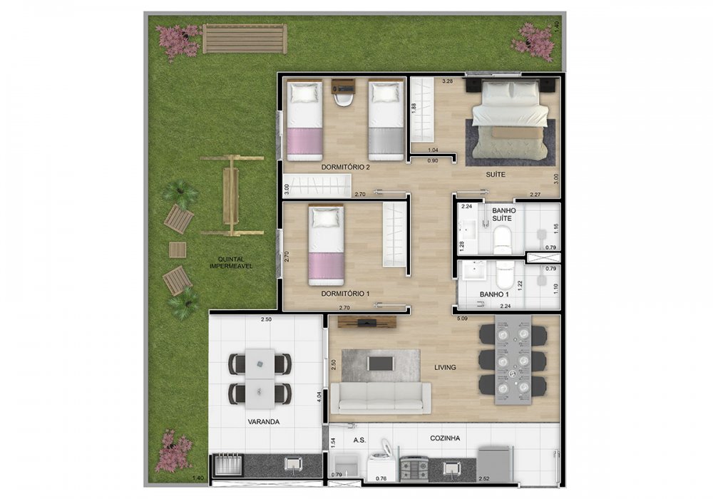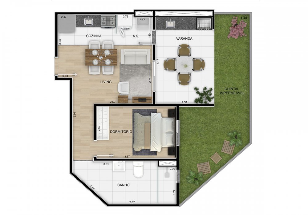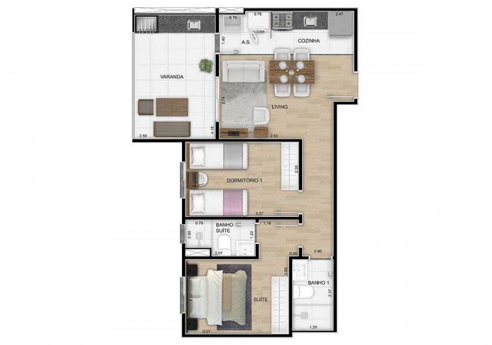 Conforto e comodidade um só lugar, com 7 tipos diferentes de plantas, entre 1, 2 e 3 dormitórios..