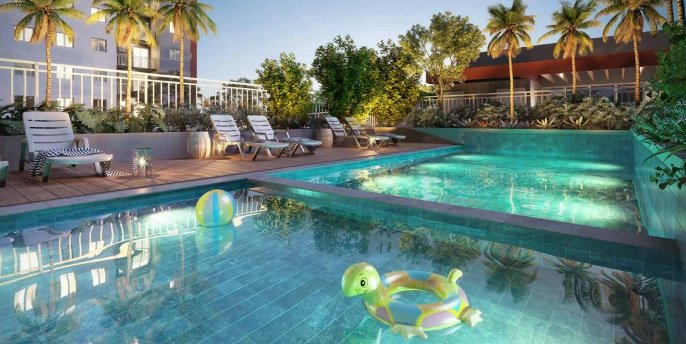 Piscina adulto e infantil, Solário, Salão de festas com área gourmet, Coworking, Churrasqueira sob pérgolas, Quadra de Beach tennis/ volley, Playground, Bicicletário, Pet place com espaço para banho, Fitness, Fitness externo, Praça da amizade, Ampla área verde.