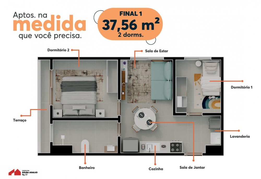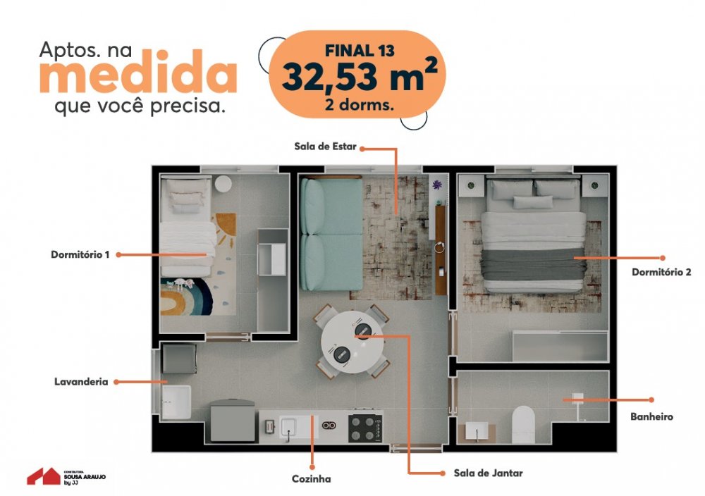 São apartamentos de 2 dormitórios com 13 opções de plantas inteligentes.