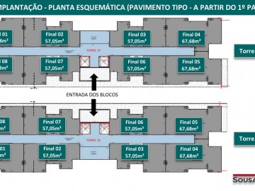 Tipo B (Meio): 57,05m² (finais 2 | 3 | 6 |7)
