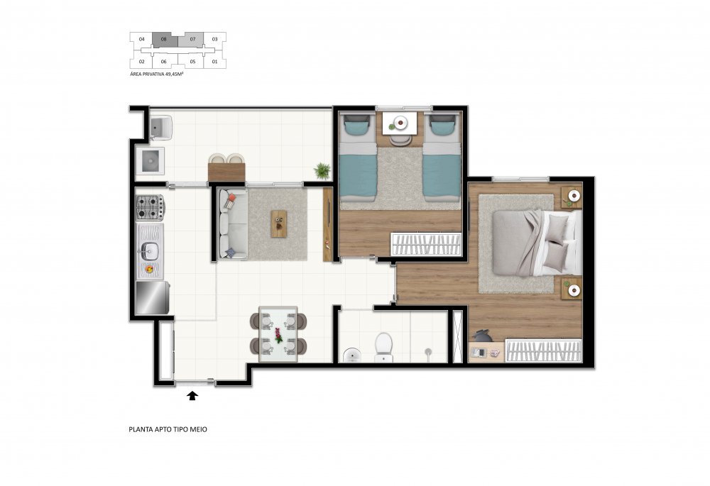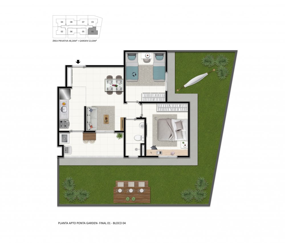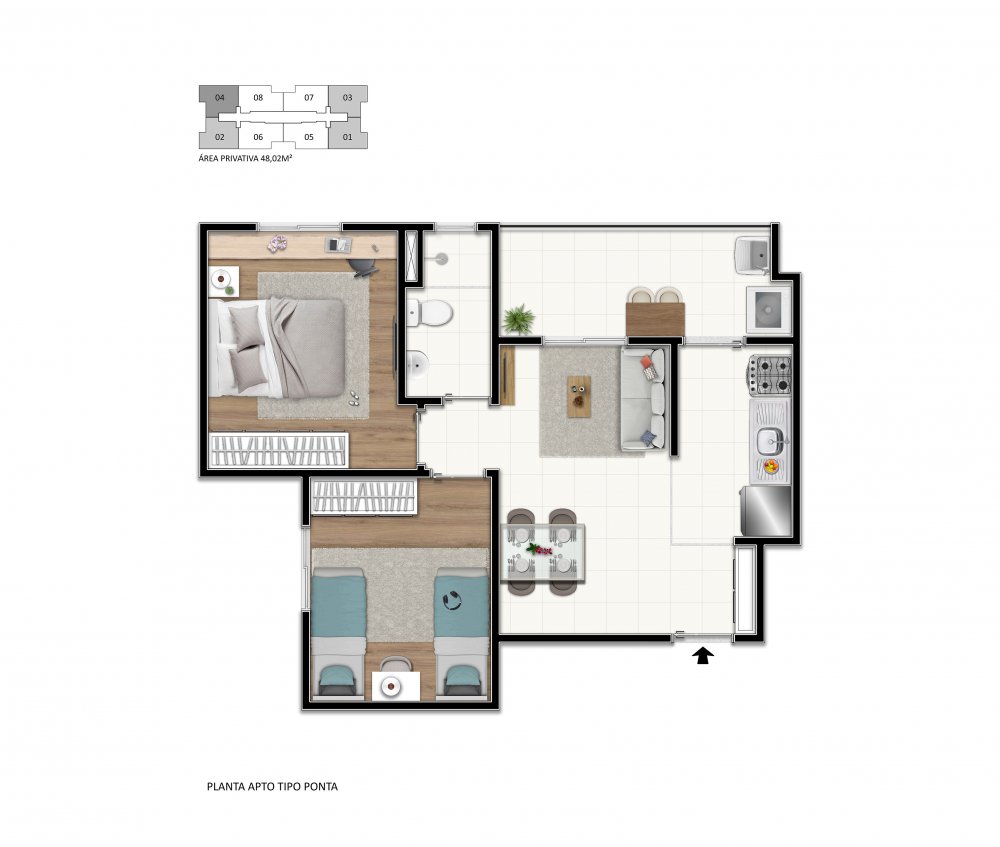 Área Total: 48 m² (R$ 5.831/m²)Área Privativa: 48 m²