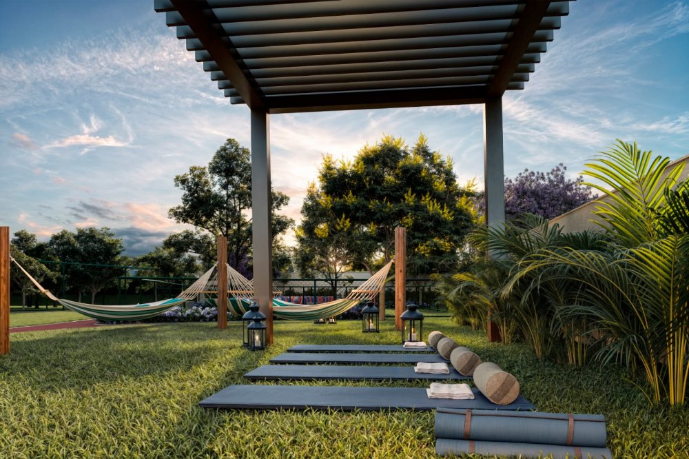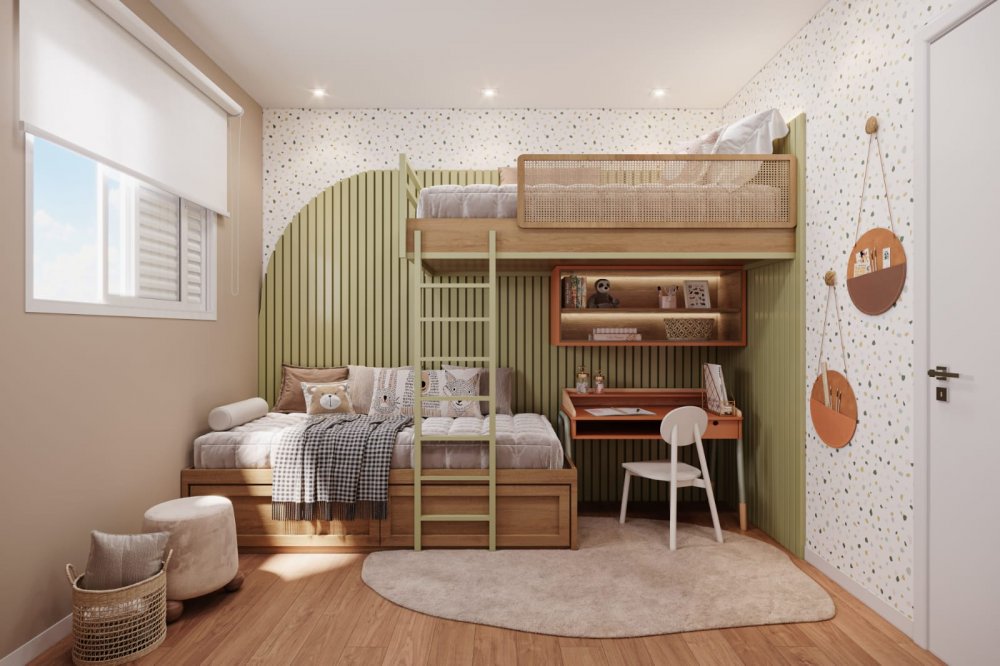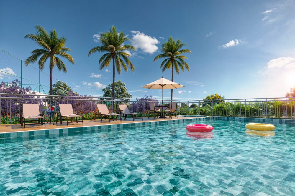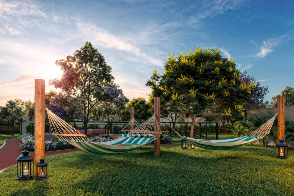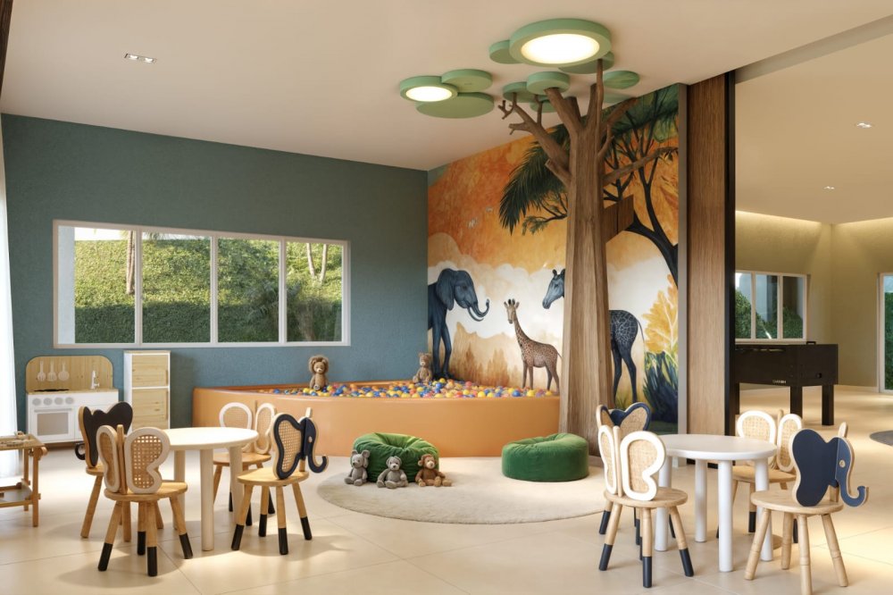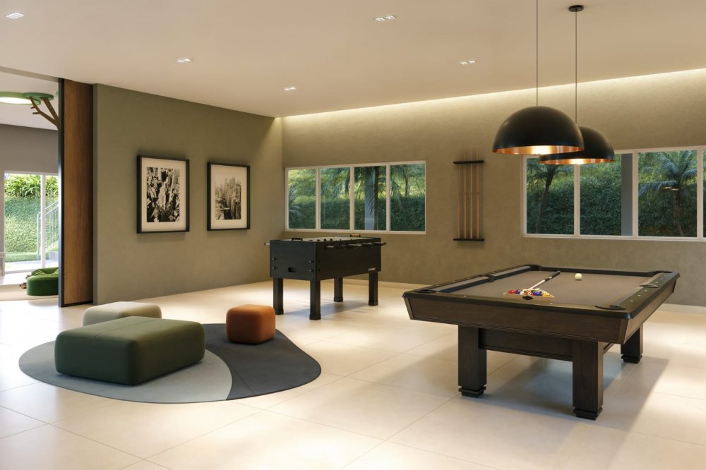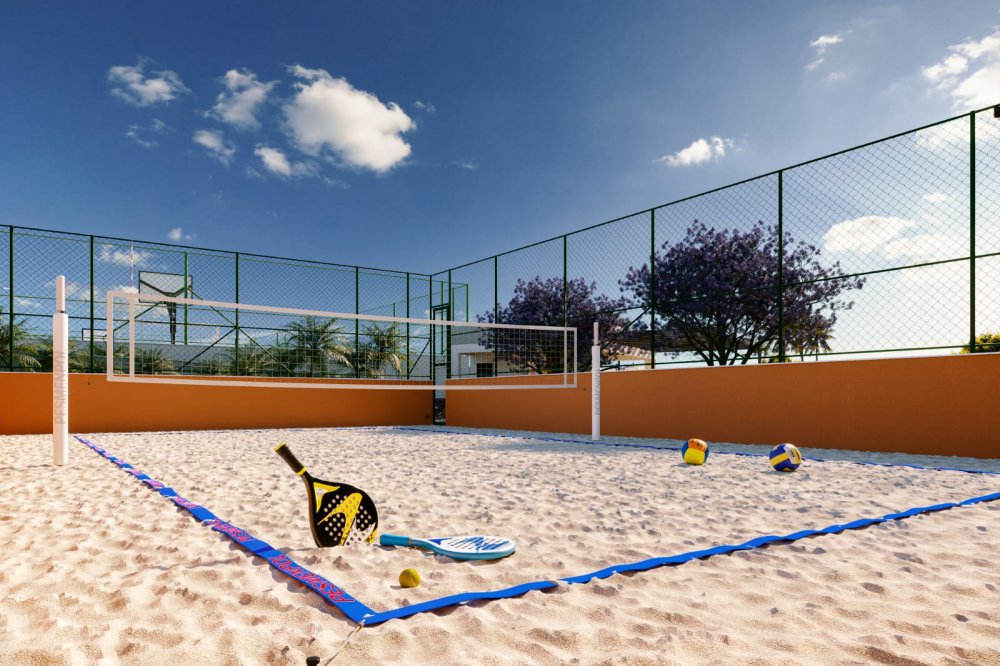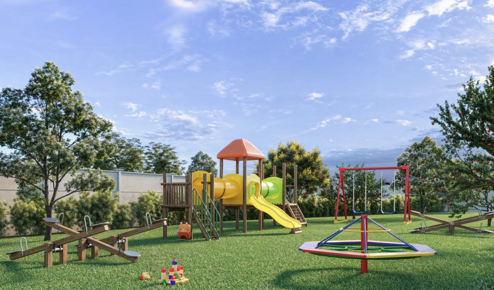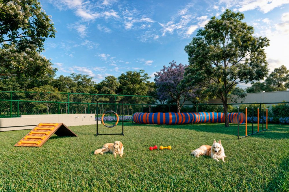 São 2 playgrounds, churrasqueira, academia, espaço gourmet, corworking, salão de jogos, espaço kids, salão de festas, quadra de areia, piscina adulto, piscina infantil, piquenique, espaço bem-estar, redário, pet place, crossfit, pista de cooper, biciclietário, quadra poliesportiva e minimercado.