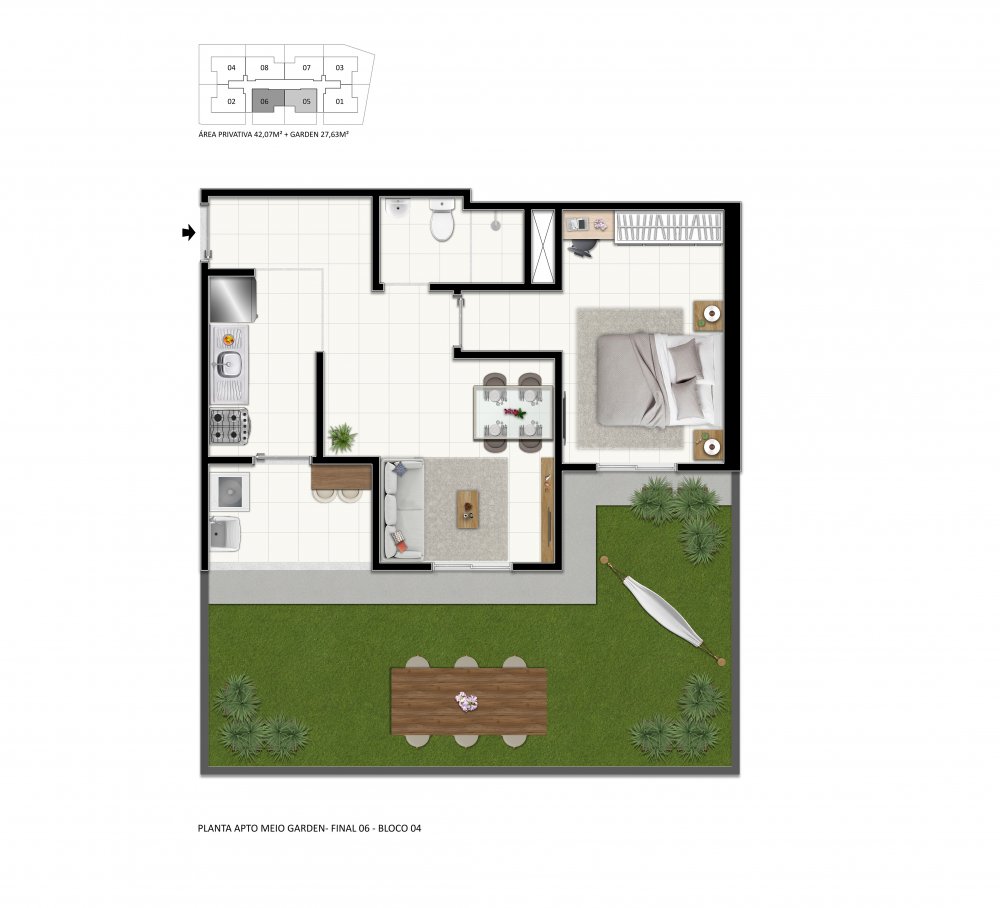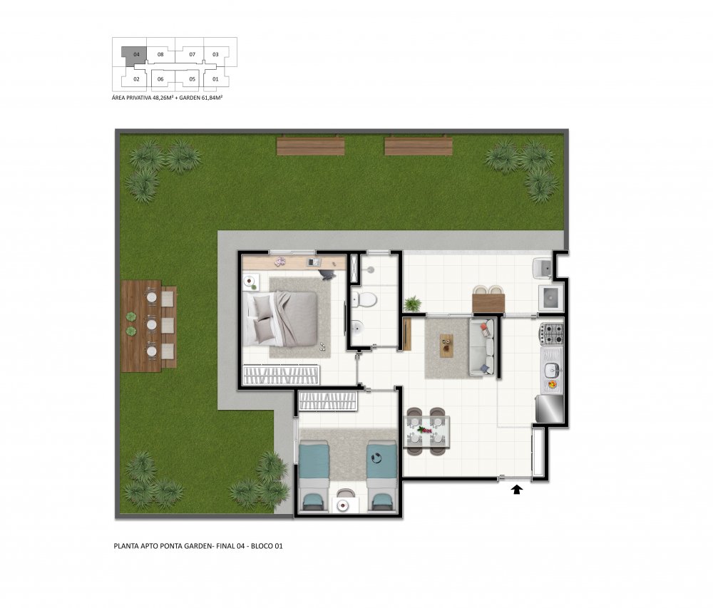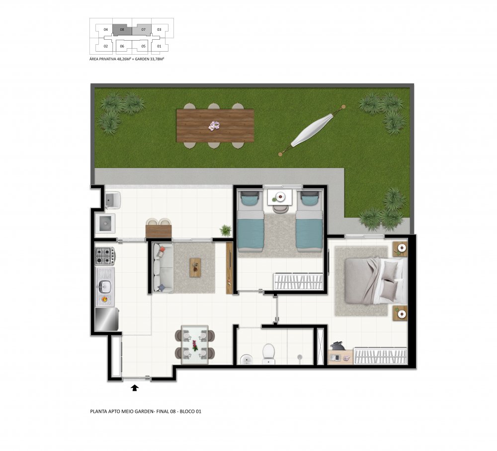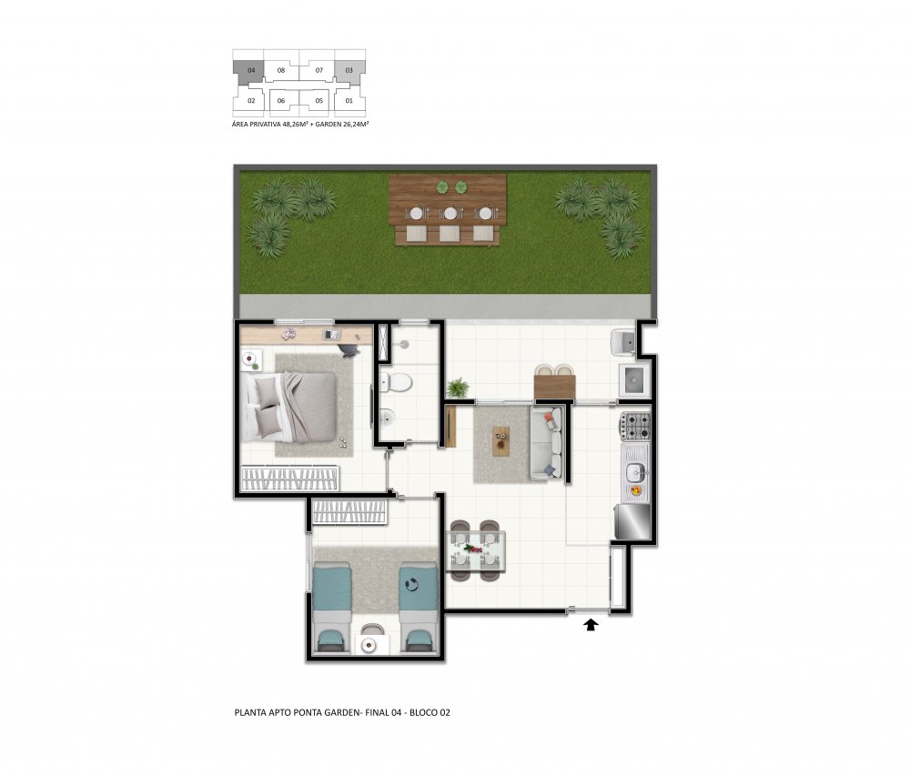 Com 1 ou 2 dormitórios, Sala, Banheiro, Cozinha, Área de serviço e Varanda e Opção de Garden