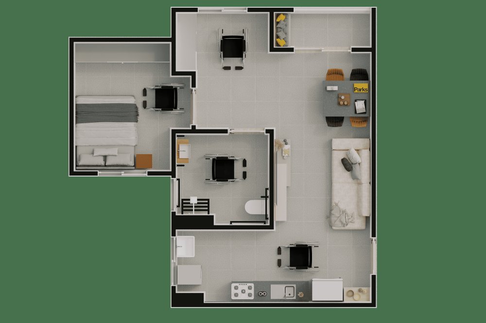 Apto Tipo PcD: 46,85 m² Finais: (03, 04, 09, 10)