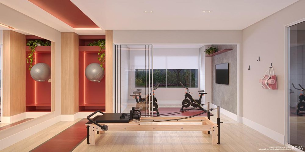 Sala de pilates e spinning equipada para manter a saúde física e mental
