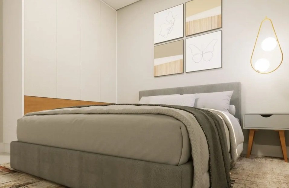 Apto. tipo B: 36,01 m² - finais: 01, 02, 10, 17, 18, 20, 21, 22