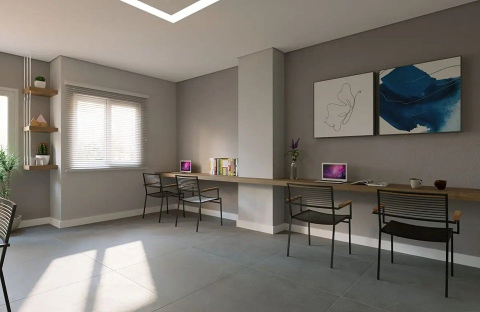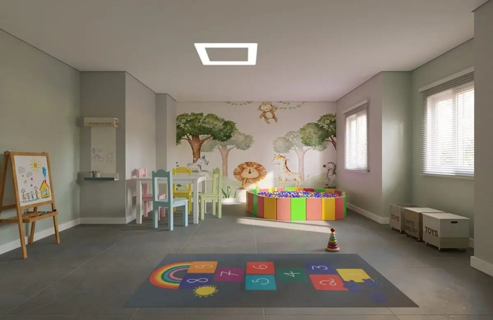 Academia, lavanderia, brinquedoteca, coworking, mercado, salão de festas, sauna, bicicletário, vestiário PNE, Portaria, piscina, delivery, churrasqueira e crossfit.