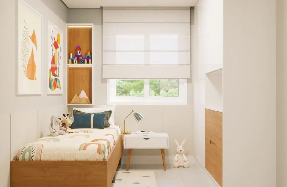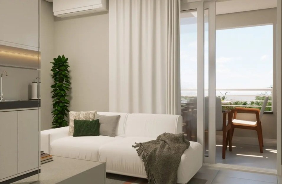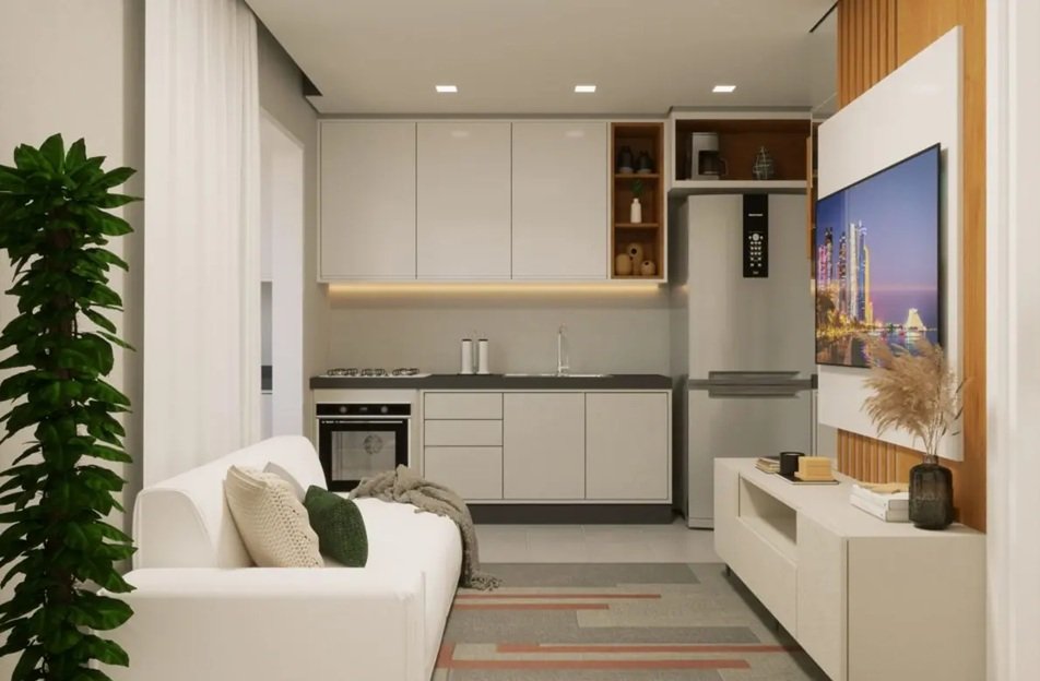 Com 2 dormitórios, banheiro, sala de estar, cozinha e varanda