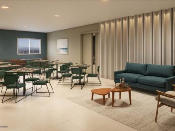 Portaria, Espaço delivery, Sala de estudos, Lavanderia, SPA massagem e beauty care, Espaço preparado para minimercado digital, Salão infantil, Espaço bricolagem, Home care, Sala de administração, Playground, Horta e espaço para piquenique, Beach arena, Fire lounge, Espaço funcional, Espaço wellness, Redário, Pet care, Pet place, Mobility point com espaço de lavagem e oficina, Bicicletário, Quadra poliesportiva recreativa.