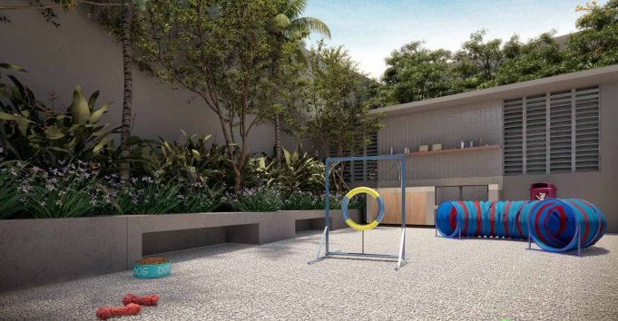 Piscina adulto e infantil, Solário, Salão de festas com área gourmet, Coworking, Churrasqueira sob pérgolas, Quadra de Beach tennis/ volley, Playground, Bicicletário, Pet place com espaço para banho, Fitness, Fitness externo, Praça da amizade, Ampla área verde.