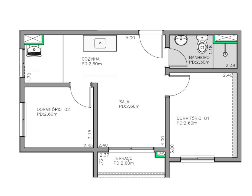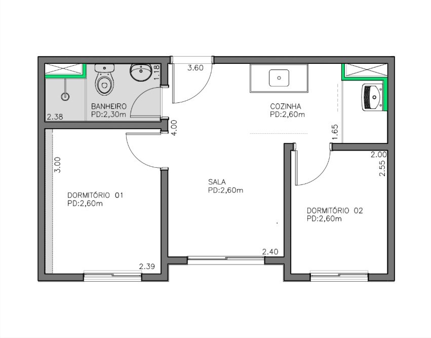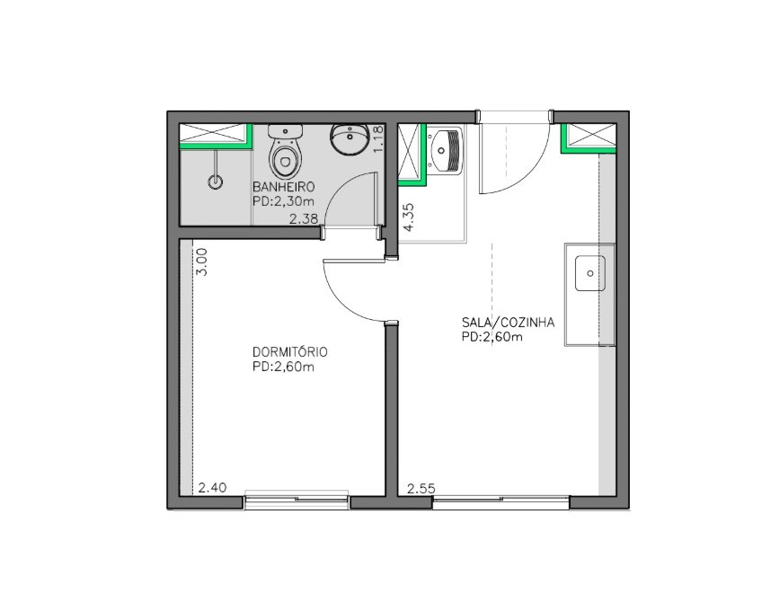 Área Construída: 24,30 m²